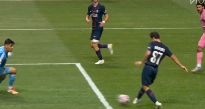 杜埃造阿維萊斯烏龍!第45分鐘,杜埃右路下底傳中,皮球打在阿維萊斯身上折射,隨后飛進自家大門,巴黎圣日耳曼3-0邁阿密國際!↓